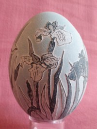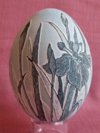 My style had changed when I realized that I liked “eggs” rather than “decorated eggs”. So, my recent favorite techniques are carving or etching and I try to leave the eggs’ natural color and appearance as much as possible.