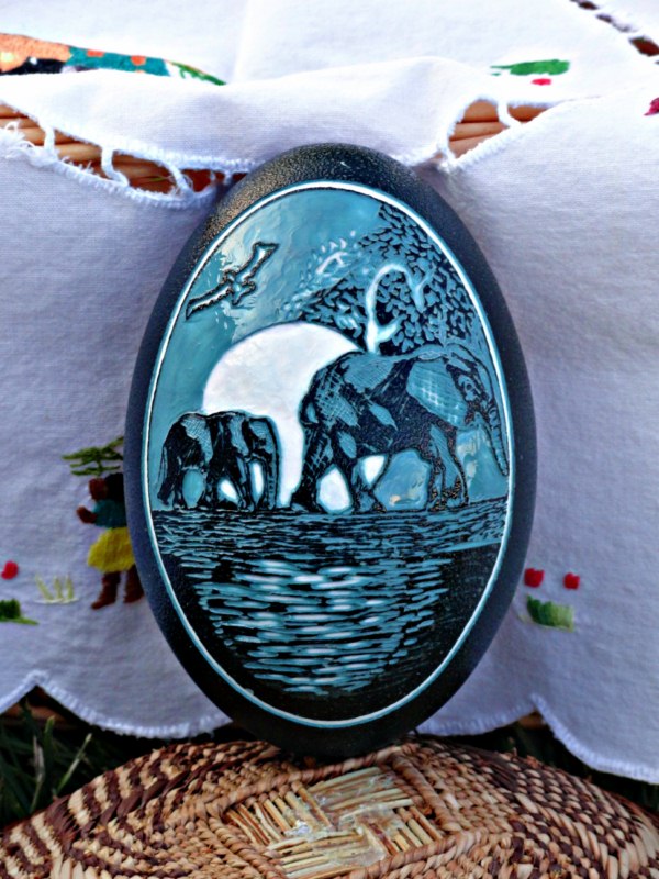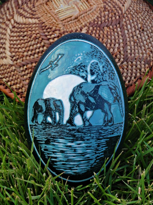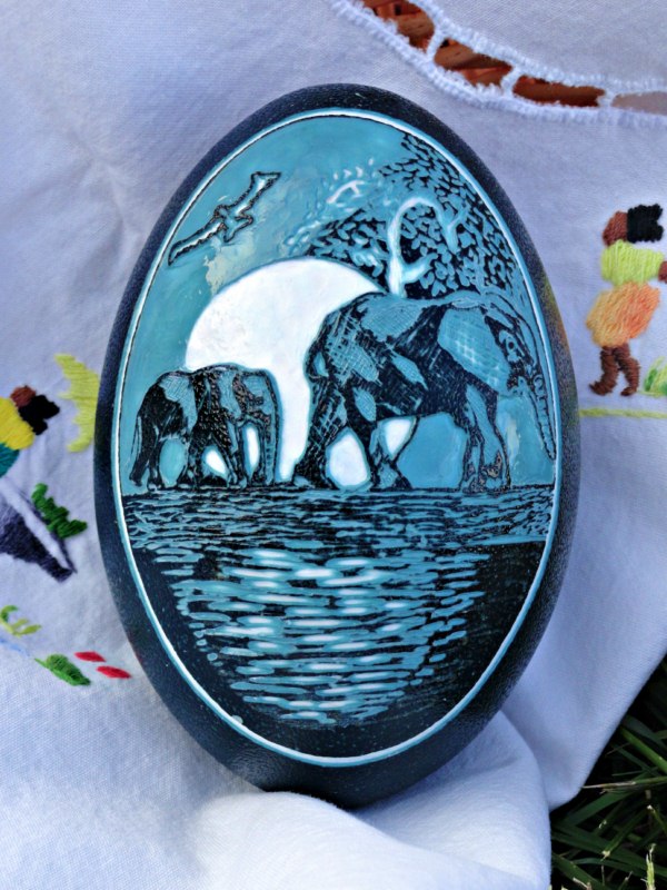 Unfortunately after living on the ranch for 25 years we were evicted by the Zimbabwean government. We lost our beautiful home, life in the bush and all the surrounding living creatures were sadly left behind. We came to the USA to start a new life. This is where I discovered emu, ostrich and goose egg carving, a past time that I absolutely dwell in and love. The beauty of Africa is still my center of focus however every season brings new ideas ready to design and turn into works of Art.